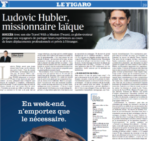 Accueil06. TWAM NewsMedias MediasPresse Article « Le Figaro », 2014 By twamzine avril 17, 2014 0 3 Article dans Le Figaro en 2014 sur TWAM et son fondateur Ludovic Hubler. Partager FacebookTwitterPinterestWhatsApp Article précédentArticle « Le Monde », 2014Article suivantArticle Journal « 20 Minutes », 2014 twamzinehttps://twamzine.travelwithamission.org Related Articles Recrutement TWAM Ouverture du recrutement de la nouvelle promotion de service civique 02. Entreprises 10 ans de partenariat entre TWAM et Amadeus : une décennie d’engagement solidaire Salons Bilan Salon du tourisme Paris 2026 LAISSER UN COMMENTAIRE Annuler la réponse Commenter : S'il vous plaît entrez votre commentaire! Nom :* S'il vous plaît entrez votre nom ici Email :* Vous avez entré une adresse email incorrecte! Veuillez entrer votre adresse email ici Site : Enregistrer mon nom, email et site web dans ce navigateur pour la prochaine fois que je commenterai. Restez connectés13,000FansJ'aime1,919SuiveursSuivre76AbonnésS'abonner Derniers articles Recrutement TWAM Ouverture du recrutement de la nouvelle promotion de service civique 02. Entreprises 10 ans de partenariat entre TWAM et Amadeus : une décennie d’engagement solidaire Salons Bilan Salon du tourisme Paris 2026 Rapports d'activités Publication du rapport annuel 2025 de Travel With A Mission 8. Favoriser l'aide d'urgence TWAM en action au Maroc : 2 ans après le tremblement de terre du 8 septembre 2023 Voir plus