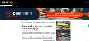 Accueil06. TWAM NewsMedias MediasPresse Article Tourmag, 22/04/2016 By twamzine avril 22, 2016 0 2 Article Tourmag, 22/04/2016 https://www.tourmag.com/Travel-With-A-Mission-quand-le-tourisme-s-engage_a80131.html# Partager FacebookTwitterPinterestWhatsApp Article précédentArticle Est Republicain, 2018Article suivantFocus TWAM Team : Témoignage des services civiques, 2016 twamzinehttps://twamzine.travelwithamission.org Related Articles Recrutement TWAM Ouverture du recrutement de la nouvelle promotion de service civique 02. Entreprises 10 ans de partenariat entre TWAM et Amadeus : une décennie d’engagement solidaire Salons Bilan Salon du tourisme Paris 2026 LAISSER UN COMMENTAIRE Annuler la réponse Commenter : S'il vous plaît entrez votre commentaire! Nom :* S'il vous plaît entrez votre nom ici Email :* Vous avez entré une adresse email incorrecte! Veuillez entrer votre adresse email ici Site : Enregistrer mon nom, email et site web dans ce navigateur pour la prochaine fois que je commenterai. Restez connectés13,000FansJ'aime1,919SuiveursSuivre76AbonnésS'abonner Derniers articles Recrutement TWAM Ouverture du recrutement de la nouvelle promotion de service civique 02. Entreprises 10 ans de partenariat entre TWAM et Amadeus : une décennie d’engagement solidaire Salons Bilan Salon du tourisme Paris 2026 Rapports d'activités Publication du rapport annuel 2025 de Travel With A Mission 8. Favoriser l'aide d'urgence TWAM en action au Maroc : 2 ans après le tremblement de terre du 8 septembre 2023 Voir plus