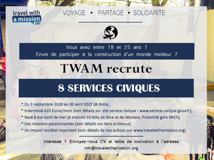 Travel With A Mission (TWAM) est heureux d’annoncer l’ouverture du recrutement pour sa nouvelle promotion de service civique 2026-2027.