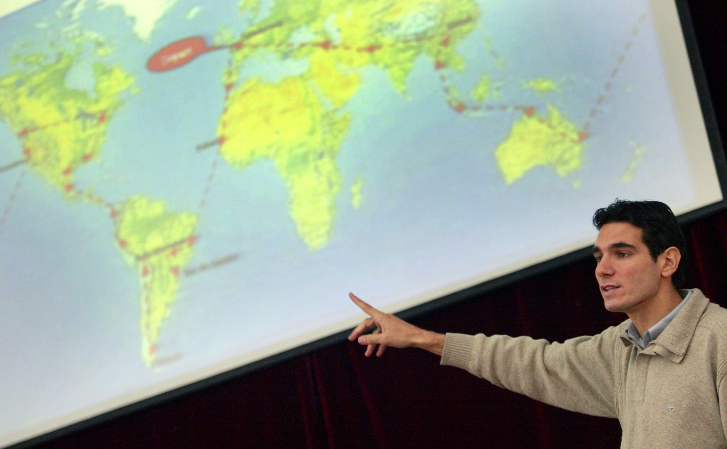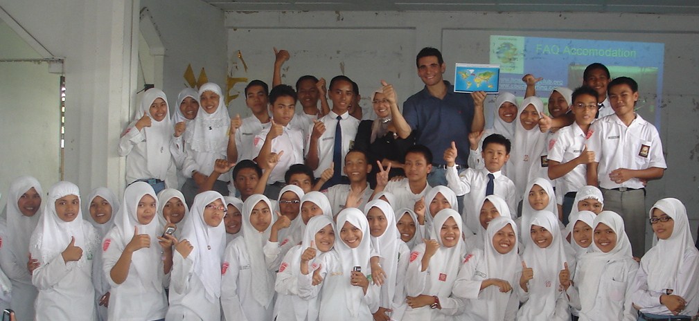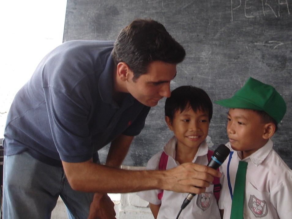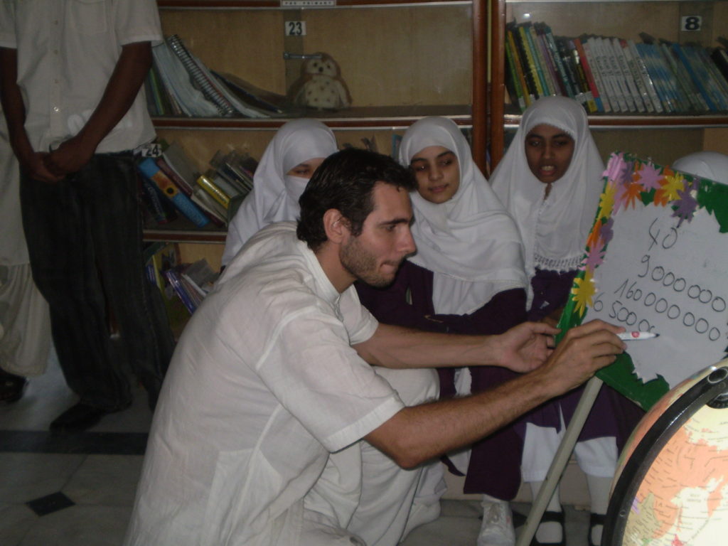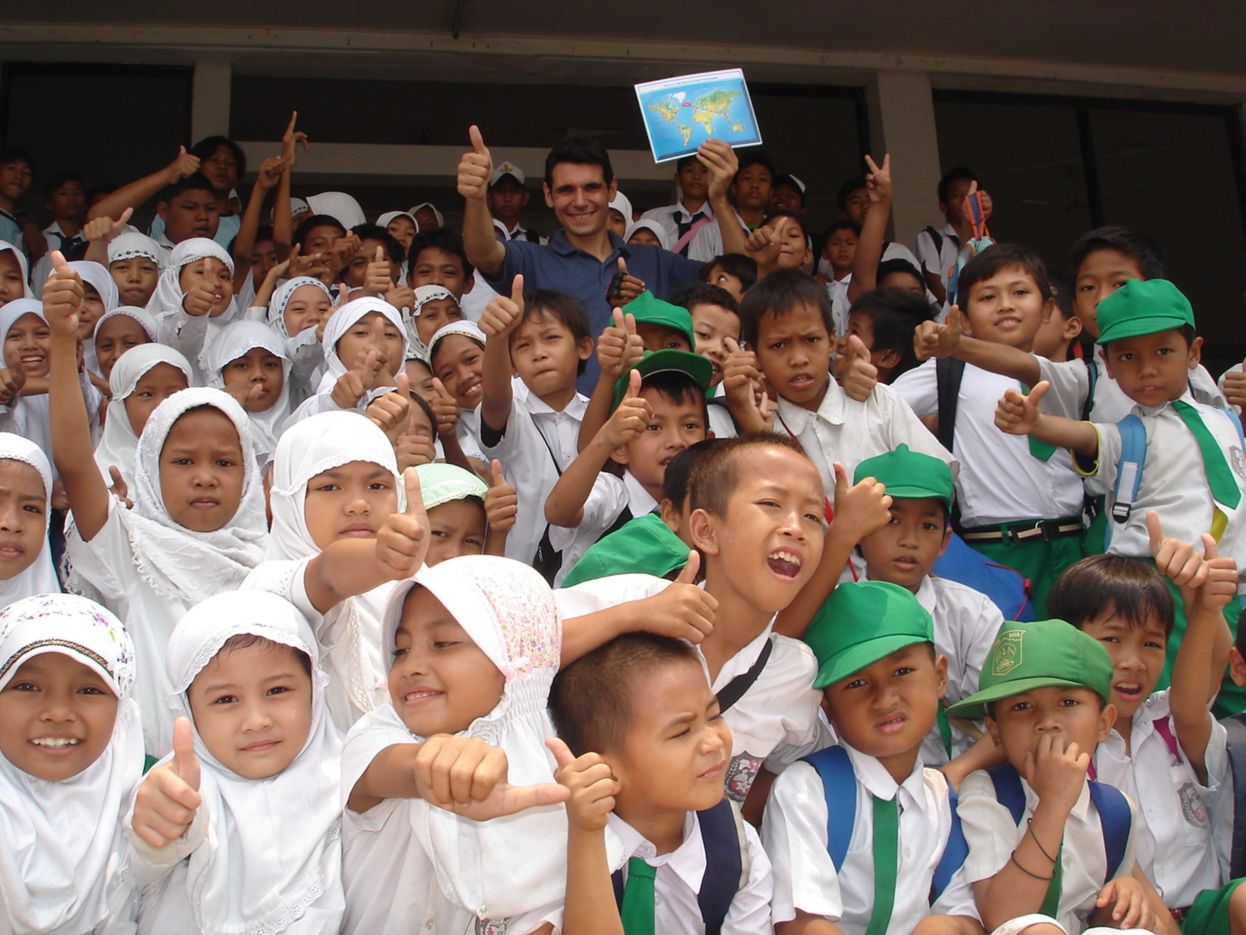 Lors de son tour du monde en stop, il partage son quotidien de voyageur directement avec les jeunes :