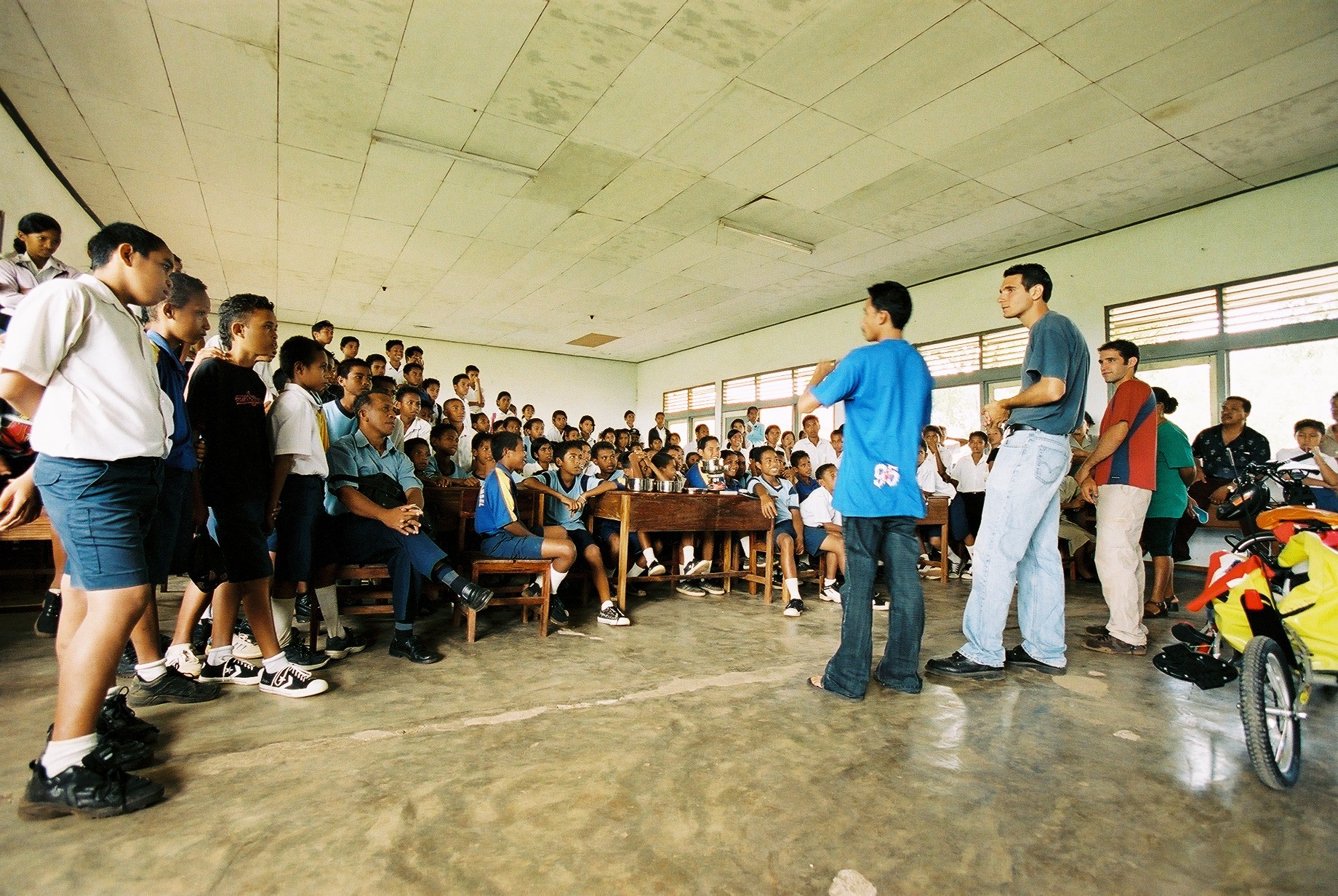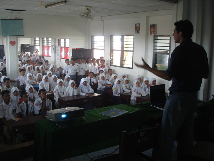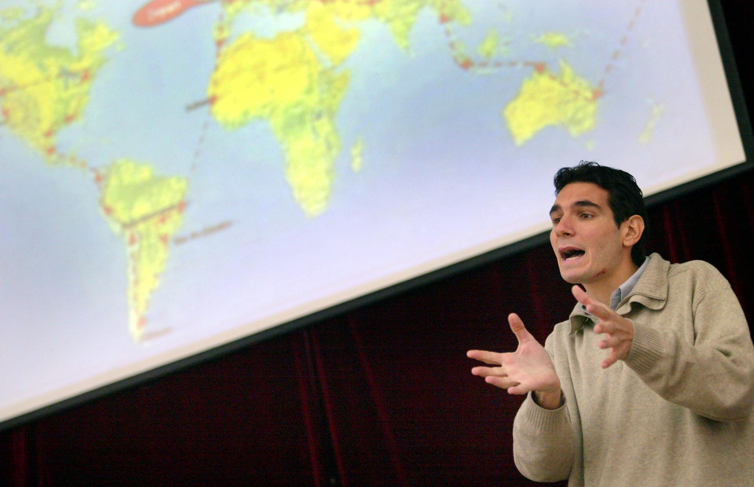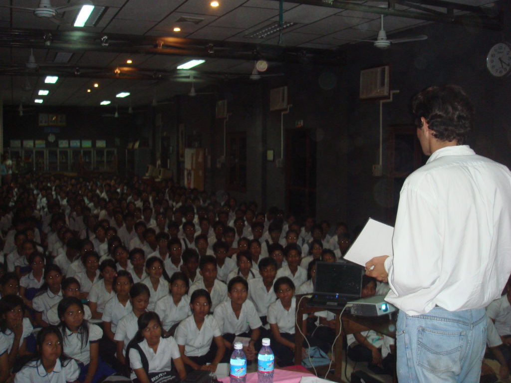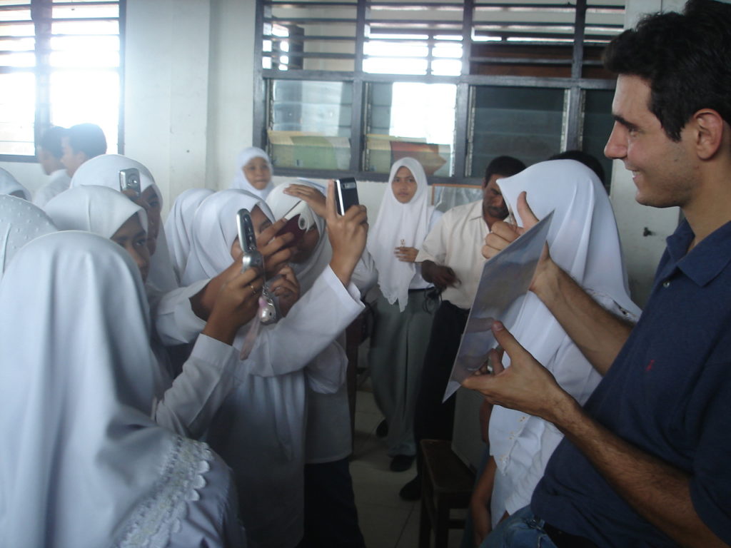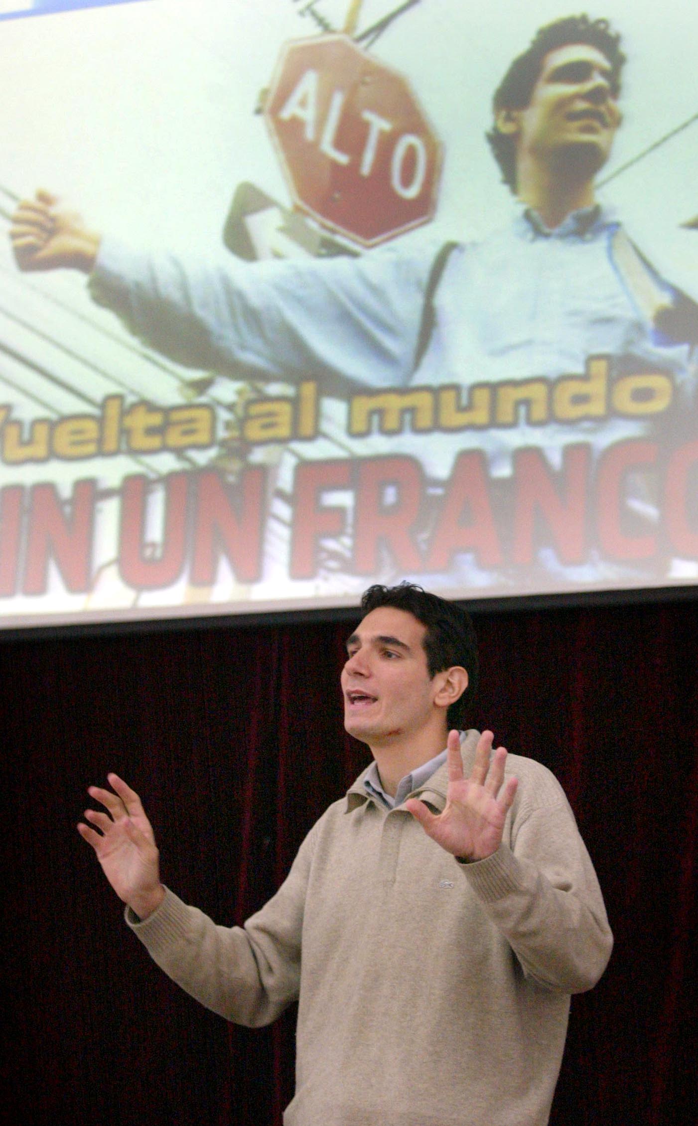 Lors de son tour du monde en stop, il partage son quotidien de voyageur directement avec les jeunes :