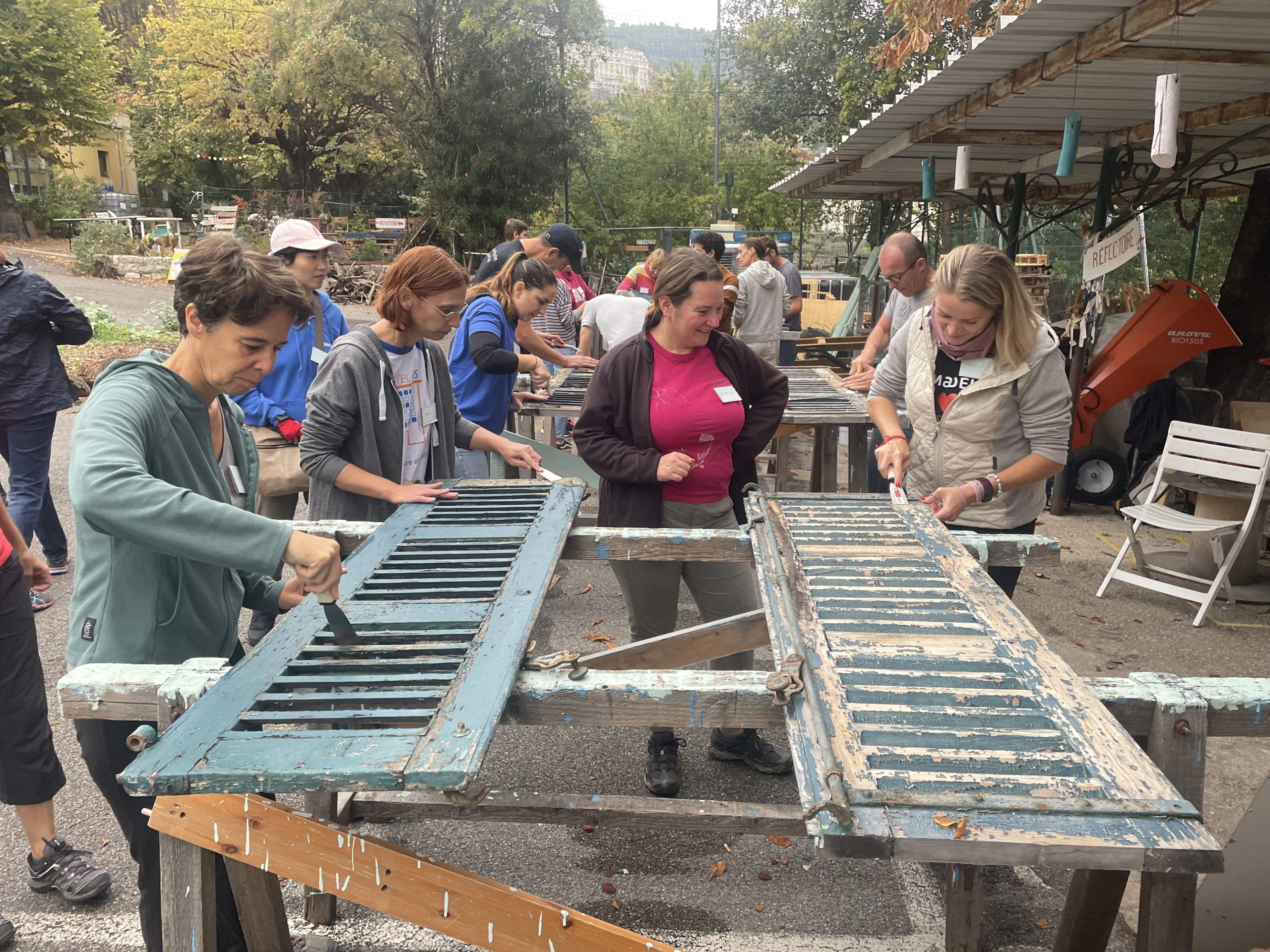 Grâce à la participation de bénévoles motivés, la réparation certaines infrastructures et du jardin du Thiers-Lieu fut possible. Ces derniers ont participés à une dizaine de missions : rénovation de volets, peintures de façades et murs, réparation d’ordinateurs, restauration de la restanque plantations, désherbage, installation de clôture pour vignes, préparation du bois pour l’hiver