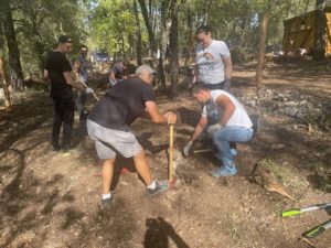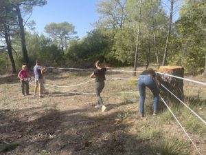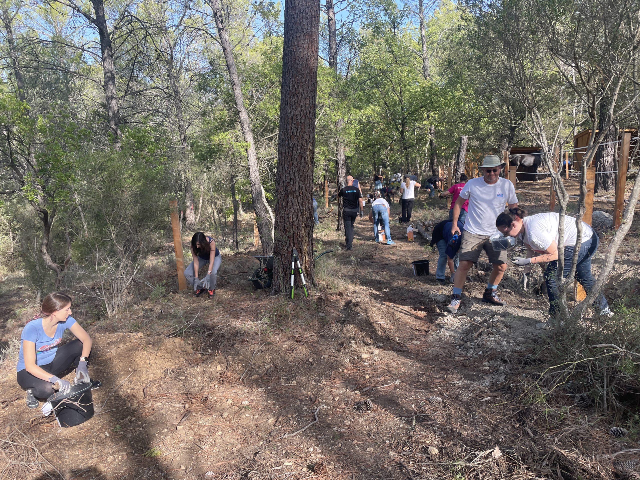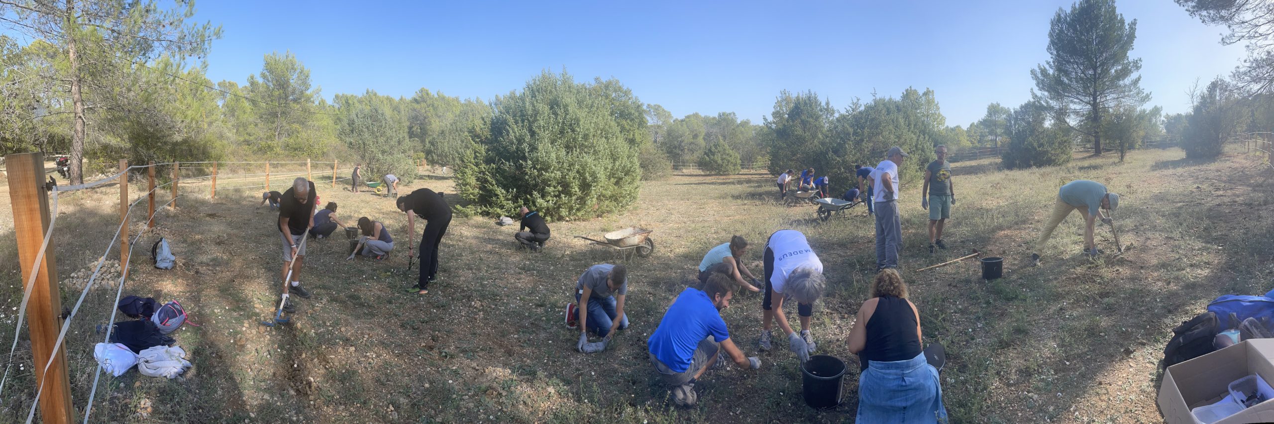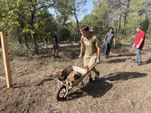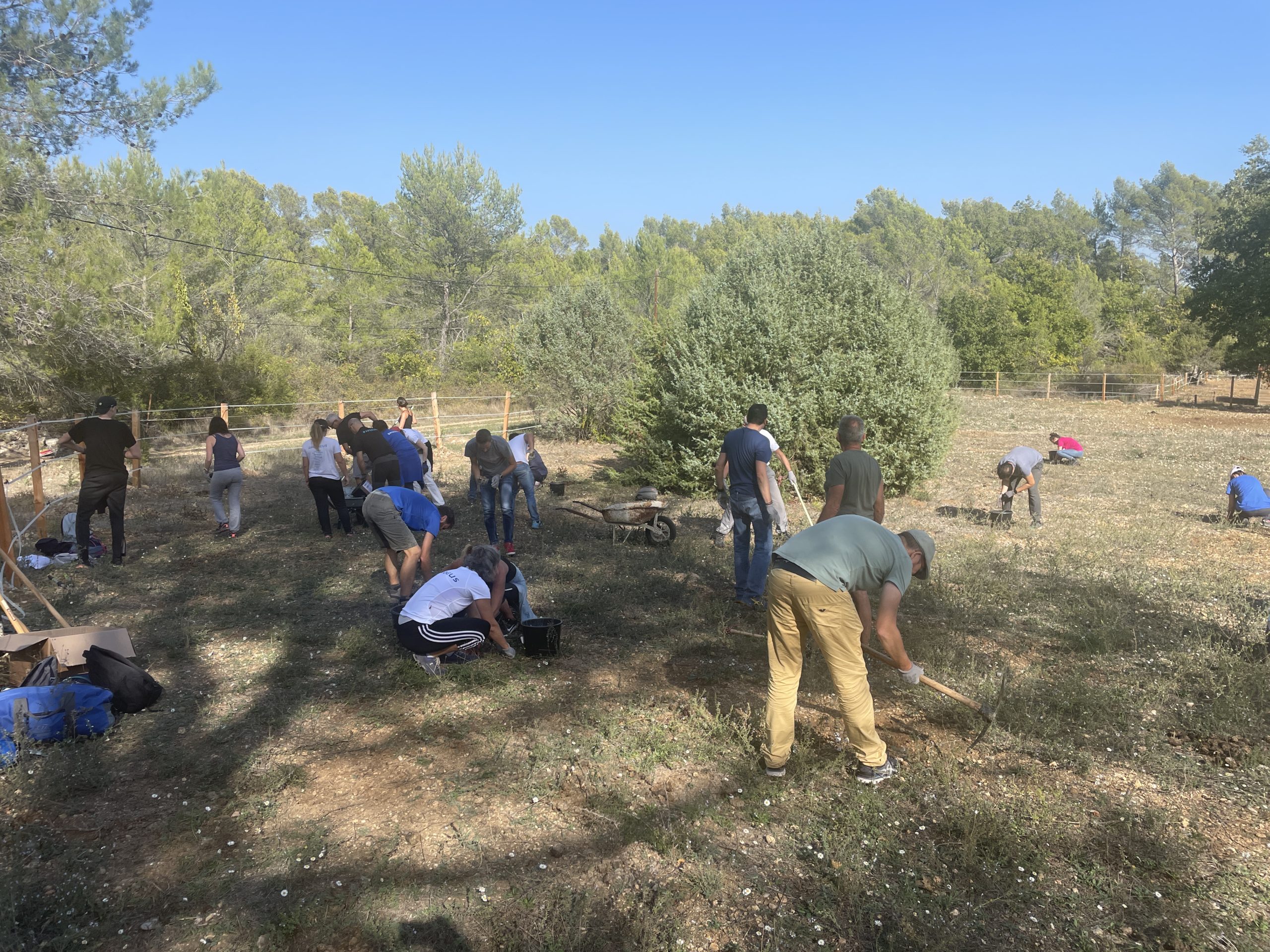 Grâce à un gros mouvement de solidarité (via notamment l’aide du Rotary District 1730), l’écurie a pu se réinstaller dans le Var. En ce 18 octobre 2022, une centaine de salariés sont venues pour l’aider dans ce processus. Ces derniers ont participés à plusieurs missions : nettoyage des terrains, désherbage, débroussaillage, ramassage de pierres dans les enclos pour les chevaux afin qu’ils ne se blessent pas, installation de clôtures