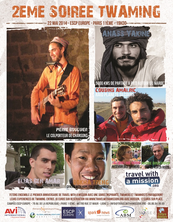 Jeudi 22 mai 2014, Paris. Travel With A Mission a célébré hier soir son premier anniversaire en organisant une soirée Twaming haute en couleurs et en émotions mettant en avant des meilleures pratiques de Twamers et de Twamhosts.