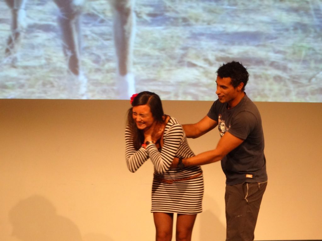 Plus de 400 participants ont marché hier soir au Maroc en compagnie de l’inspirant Anass Yakine, chanté aux sons bulgares ou paroles népalaises colportées au son de la guitare de Pierre Bouguier, et découvert avec le pompier Benjamin Almaric quels sont les gestes qui sauvent, enseignés lors de plus durant son voyage autour du monde. Elias Ben Amar nous a lui emmené dans son combat pour la gestion des déchets tandis qu’André Brugiroux, vétéran de la route, nous comblait avec ses anecdotes et conseils.