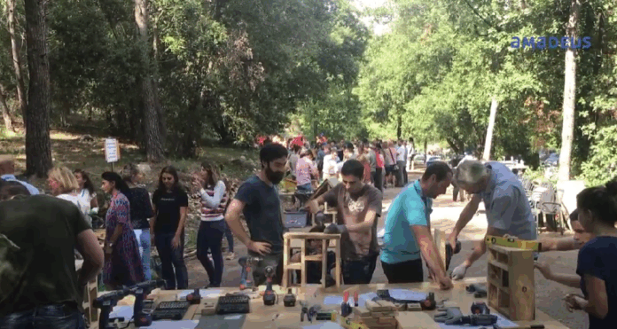 • Construction et installation de 26 nichoirs ainsi que de 11 habitats à insectes,