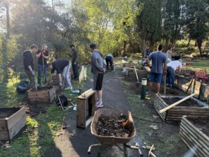 Bruno, salarié de l’Arche, a d’abord identifié les besoins du site. Au total, 13 ateliers solidaires ont été organisés, principalement consacrés au jardinage et à la création d’espaces verts utiles et durables. Les équipes ont réalisé de nombreuses actions concrètes, telles que :