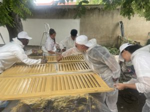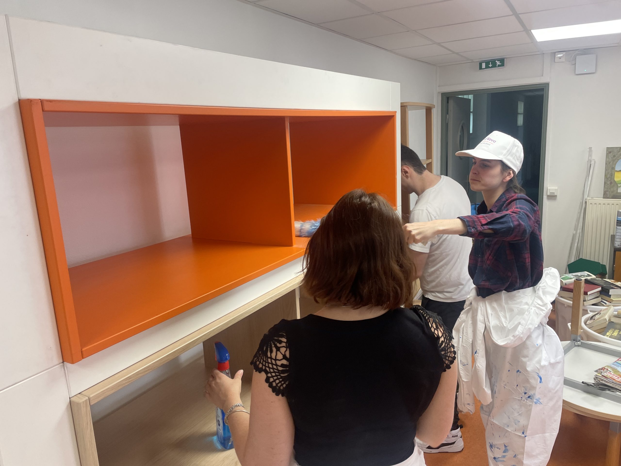 Pinceaux en main, ils ont repeint murs et portes, réhabilité des volets et aménagé la bibliothèque. Autant de gestes concrets qui rendent le lieu plus accueillant et chaleureux, offrant aux résidentes un cadre propice à la reconstruction.